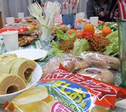 それぞれが持ち寄ったお菓子と、今夜参加できないメンバーからの差し入れで、テーブルが一杯に!!